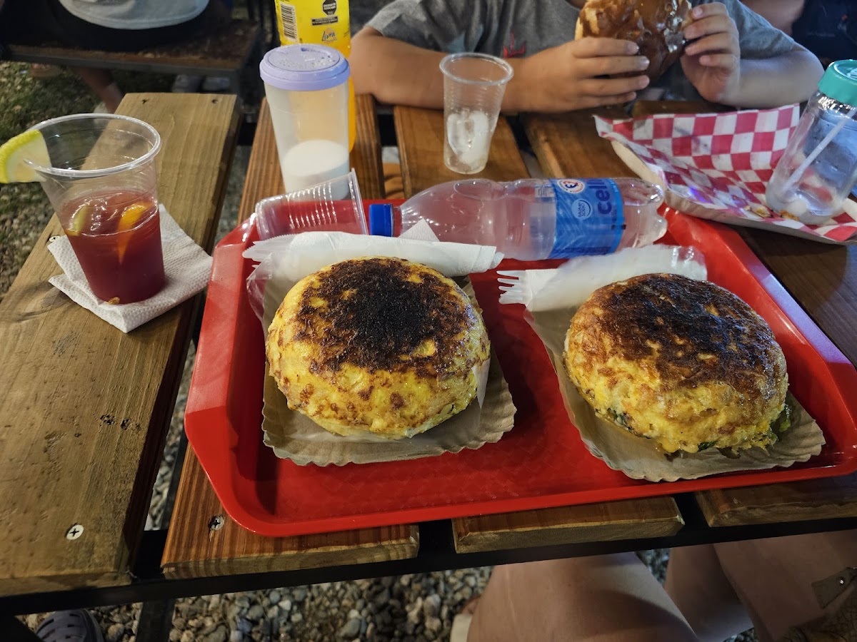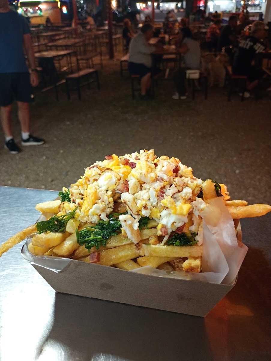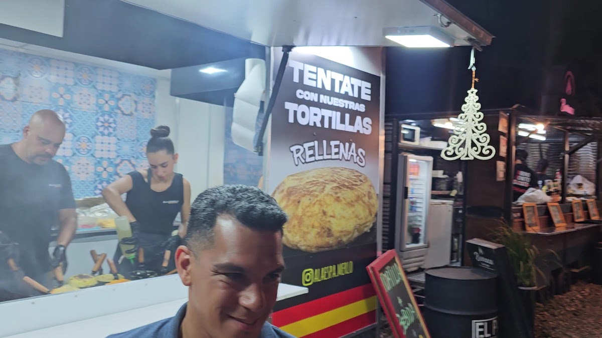 Las tortillas españolas estan muy buenas. Compramos en varios food tracks. Los tacos estaban buenos lo que si no tenian nachos y las papas estaban frías. El precio de un menú ronda entre los 7500 los $10.500, todos incluían bebida. Lo que si recomiendo es el café y con crema y el café helado, el chico que atendia muy amable y nos recomendó dos sabores que estaban muy ricos. Y Los baños limpios.